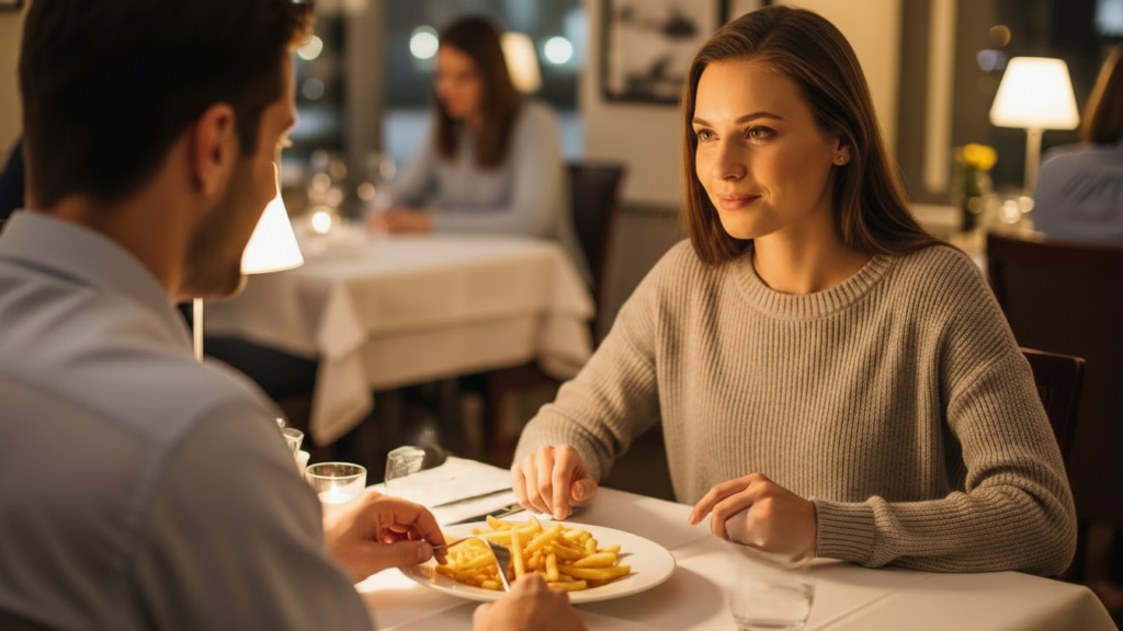 This mostly happens at the start of a date, even when looking at the menu due to low maintenance. The woman should not appear-nakedly hungry just to end up devouring half of your fries. Mostly social pressure, not actual hunger.