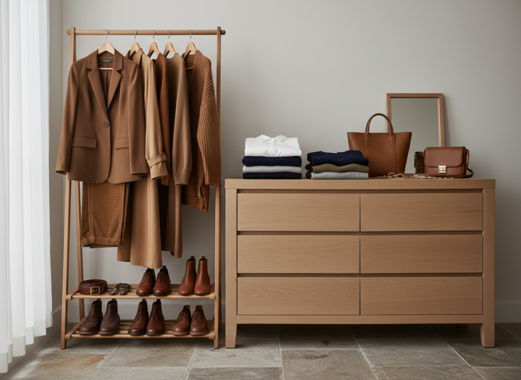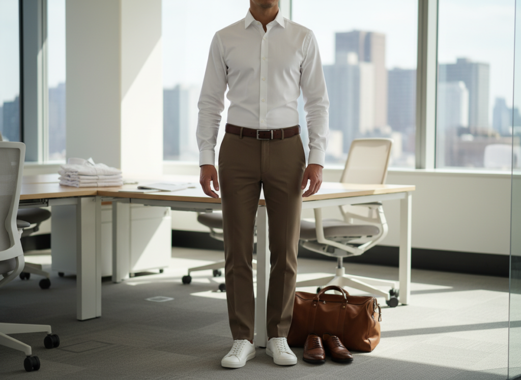 Repeatable outfits save time. Build color pairings around brown basics. Rotate white, navy, gray, olive, and black tops. Keep shoe and belt tones aligned. You gain many outfits from few pieces. This approach supports daily wear without fatigue or wasted effort.
