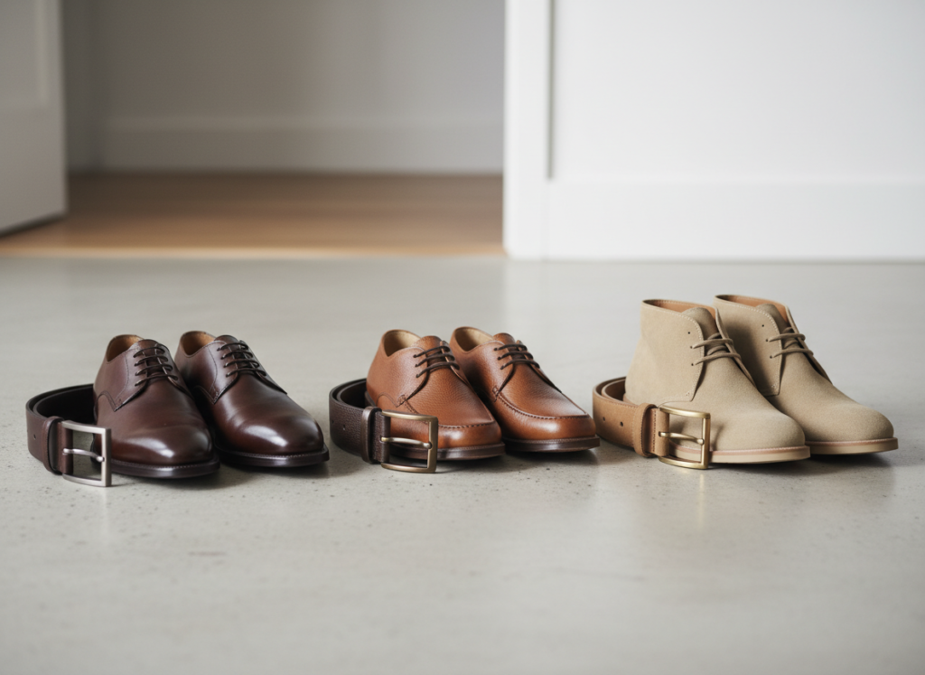 Belts and shoes need alignment. Dark brown shoes need dark brown belts. Tan shoes need tan belts. Small mismatch breaks visual rhythm. Consistent leather tone sharpens outfits instantly. You avoid confusion in formal settings. This habit raises polish level without buying new clothes.