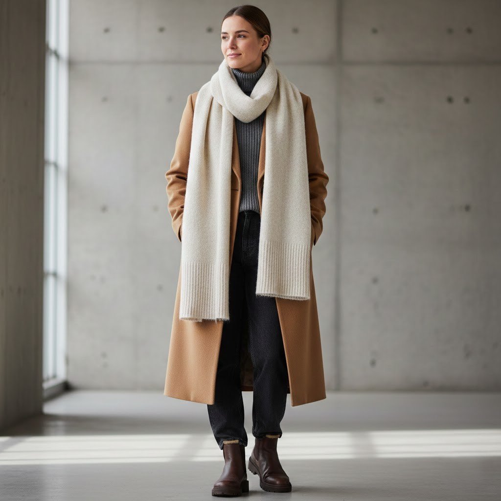 When you have a plan to keep the look simple and minimal and want to add something that highlights the outfit, you can choose a texture scarf for an attractive look.